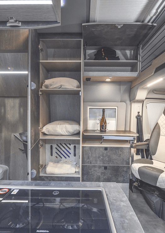 Dankzij het lichtere gewicht zijn diverse configuraties mogelijk, zoals 4x4-aandrijving en een uitschuifbaar dak. Bovendien voorkomt AIR-meubilair wrijving, geluiden en losse schroeven, waardoor comfort en duurzaamheid toenemen.